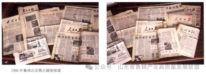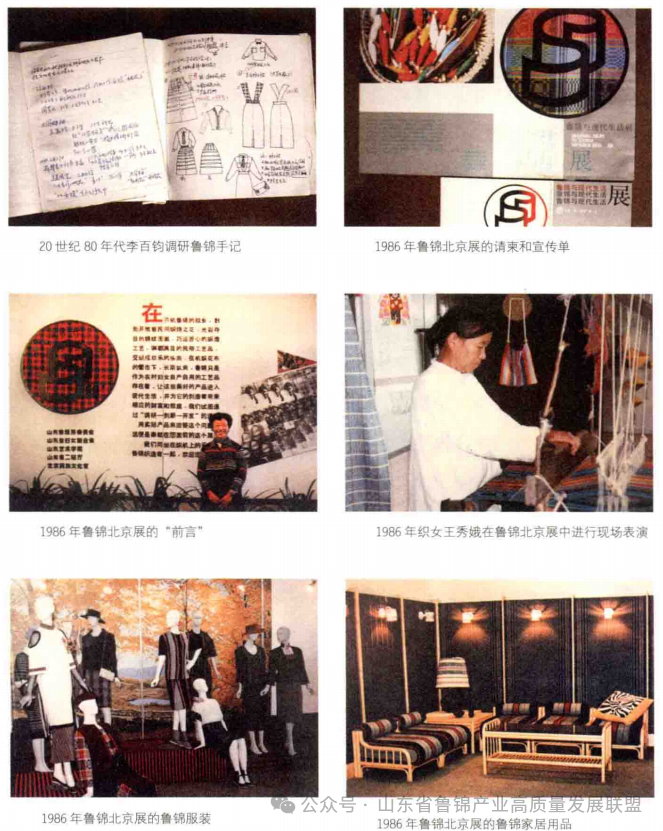 1986年8月5日,山东省省长李昌安和部分省领导杨衍银、马世忠、卢洪刘勇、王怀俊、刘守杰、刘汉彬等在省工展馆审查了即将进京展出的“鲁锦与现代生活展”,并听取了介绍。李昌安省长对开发工作做了具体指示:“看鲁锦是第二次了。看了整个展览,个人认为可以进京。这次进京展览我们应该扎扎实实地做工作,不搞花架子,要把重点放到家里,放在经济上,我们做点事、造声势简单,抓工作难……要解决生产、经营、产品更新、开发等问题,要真正把鲁锦变成一个商品。……要把这8个月的工作总结一下,这次开发鲁锦反映了把群众动员起来了不得,要继续把这项工作做下去。”(根据会议录音整理1986年8月20日~9月4日,在山东省委、省政府的支持下,由山东省经委、山东省妇联、山东艺术学院、山东省二轻厅、北京民族文化宫联合举办的“鲁锦与现代生活展”于8月20日在北京民族文化宫开幕,全国政协副主席陈再道、雷洁琼,轻工部部长杨波,全国人大民委副主任吴向必,全国妇联书记处第一书记张帼英,全国人大常委徐运北,中共山东省委常委、省妇联主任杨衍银等领导同志出席了开幕式,陈再道、雷洁琼副主席为鲁锦展剪彩。原中央工艺美术学院顾问张仃先生为展览题词:“来自民间,回到民间。”展览采用了边展边销边订货的展、销、订形式,在北京引起了很大的轰动(展览中,鄄城县杨屯村年近 60 岁的织锦能手王秀娥祖孙三代进京表演)。《经济参考报)头版(1986年8月19日)以《协同开发鲁锦、脱贫致有望》为题,发表评论文章:“这就是把鲁西南民间传统产品--鲁锦,与现代工艺美术结合起来使之适应现代人们的生活情趣和审美意识,成为美观实用而且用途广泛的产品。如果销路打开,它将是鲁西南人民的一大财源。
