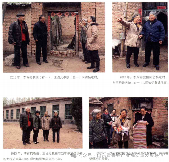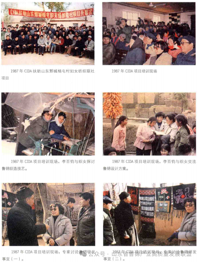 本项目由山东省委常委、省妇联主任杨衍银亲自担任项目主持人,在菏泽市鄄城县旧城镇杨屯村组织了由省、地、县妇联和杨屯村妇代会干部参加的项目工作小组。同时为了提高织锦的设计水平,又聘请了中央工艺美术学院梁仁生汪玉琳等教授和山东艺术学院师生及省内相关专家对纺织联社的学员进行新工艺技术的培训和新花色、新产品的生产指导,共有 120 名农家织女参加了这次为期2个月的国际援助项目。这一项目在鲁锦织女人才的培养上起到了很好的作用,笔者在 2000年前后多次寻访杨屯村,都能听到乡亲们对那次培训的追忆,很多村里的织锦能手都经历了这次培训,直到现在依然是织锦的骨干力量,不过已经从 20 多岁刚出嫁的新娘成为了近 50 岁的中年妇女,并且织女人才的储备现在也面临着严重的危机。