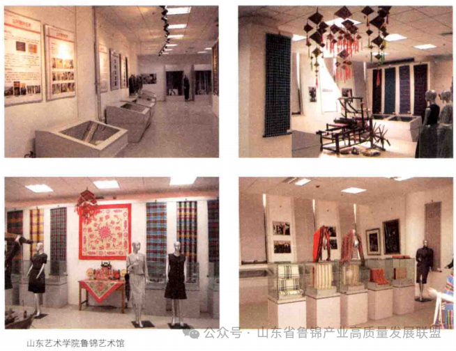 近年来,山东艺术学院成立了“鲁锦艺术研究所”,由笔者担任所长继续对鲁锦文化和鲁锦产品进行持久性的研发工作。笔者在第一代鲁锦研发专家已取得成果的基础上,先后申报了山东省重点文化产业项目《鲁锦文化及工艺品研发项目》、山东省文化厅艺术科学重点课题《 中国鲁锦艺术的理论与应用研究》、山东省教育厅科技计划项目《鲁锦文化及鲁锦产品的研发与创新》、清华大学柒牌非物质文化遗产研究与保护基金项目《山东鲁锦织造技艺研究》等科研和教研项目,对鲁锦的定义、产品、历史渊源及民俗加以深入的考证;对鲁锦的织机、原料、工序、织造技艺、纹样内涵和织女概况进行了保护性的挖掘整理和研究阐述。以山东艺术学院设计学院为依托,以鲁锦艺术研究所为学术平台,从保护、研究和开发这三个角度出发,将鲁锦艺术引入大学的设计教学中,带领学生设计了一批新颖的鲁锦产品,得到了广泛的好评。