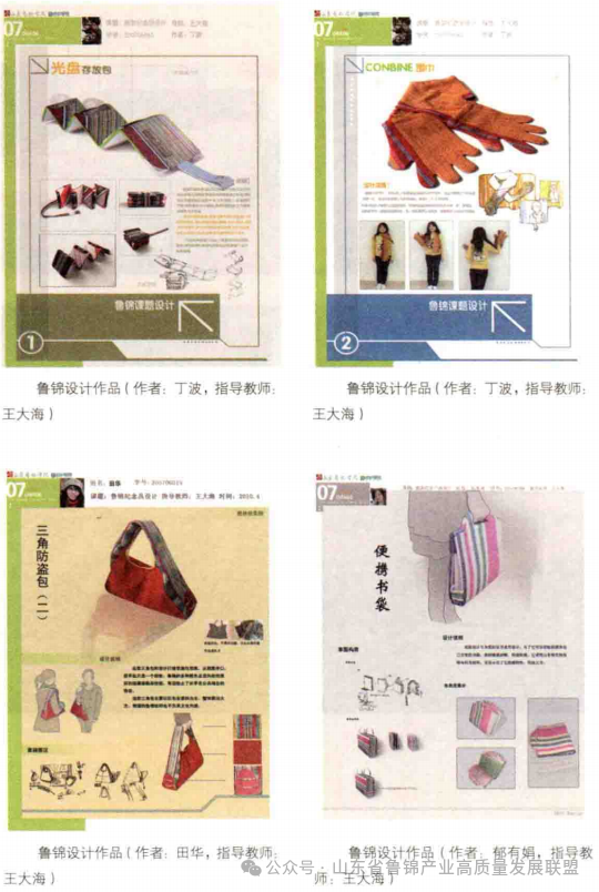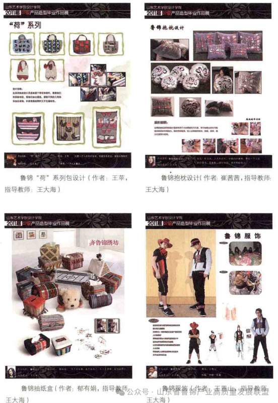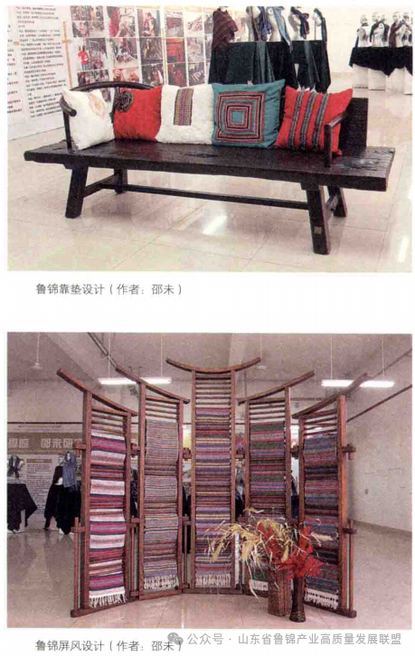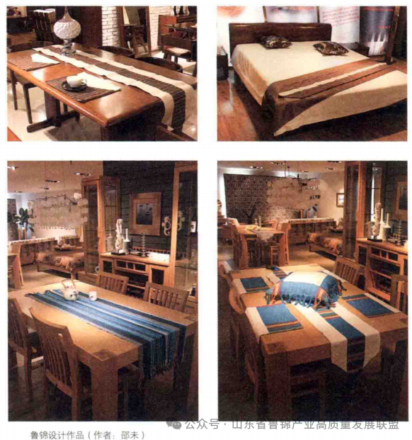 一旦鲁锦产品的本土产业链架构成功,其丰富的历史、艺术、文化、民俗及使用价值,定能迅速普及这一领域的文化空白,进而规范产品研发企业的构架推进研发企业的规范化。再进一步,本着“民族的就是世界的”的原则整合世界范围的现代设计理念,在传统鲁锦中引入现代设计符号,推动全球环境下文化产业链的形成。